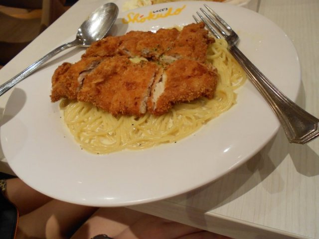 This chicken katsu spaghetti was delicious, noodles were springy, sauce was flavourful and the chicken cutlets are well marinated, crispy battered with moist and tender meat underneath.