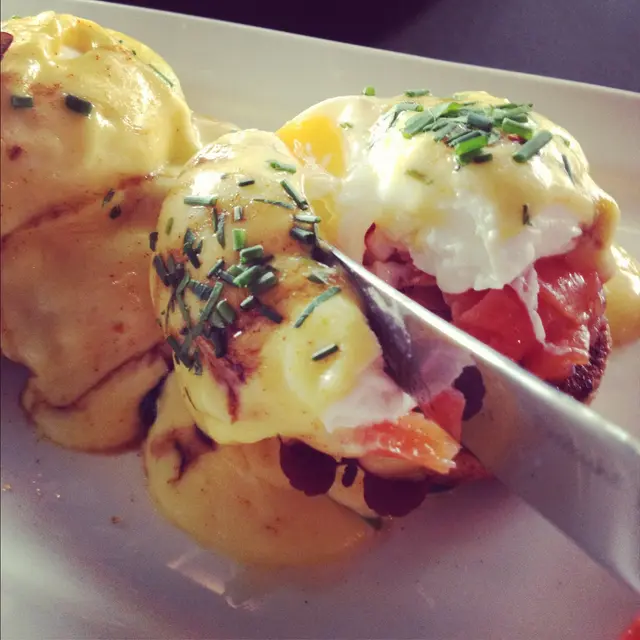 First up- Eggs Benedict with Smoked Trout ($17.90). Highly Recommended. I absolutely love this dish. The poached eggs, thick slices of smoked salmon and spinach are wedged between kalamata rosemary scones, drizzled with citron hollandaise sauce. The scones seemed to be toasted to a perfect crispy texture which adds bite to the runny eggs and fish combo. Every bite is a burst of flavours- from the tangy hollandaise sauce, combined with a slightly salty edge from the smoked salmon and semi-runny egg yolk.