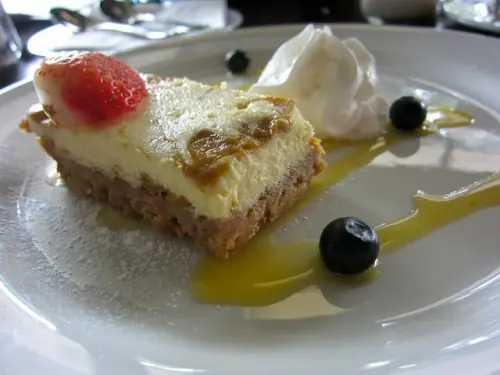 Very pretty presentation and served with apricot peach sauce and cream with strawberry and blueberry fruit garnishing. It does have a nice tropical fruit taste, with the infusion of mango in the cheesecake although I didn’t think the sauce really complemented it. But it’s a great and satisfying dessert to end the meal nonetheless!
