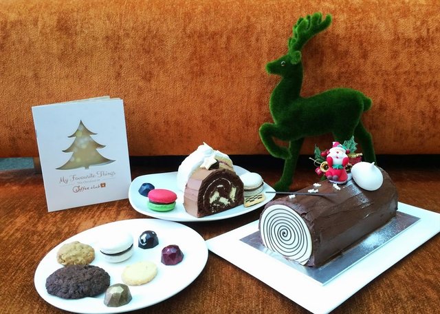 log cakes- White lychee Christmas, Mont Blanc Yuletide , Santa's Macadamia Noel and last but not least, Chocolate Wonderland . The first 3 are new while the last is a hot favorite at the cafe . We were treated to 2 of the log cakes :)