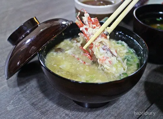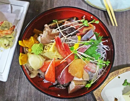 Chirashi Sushi Gozen set S$39.80 serves with a bowl of prawn broth and truffled flavoured chawanmushi. Sweet delicious broth serving that left a deep impression over it. Fusion of truffle sauce with chawanmushi is indeed tasty. As for the set, we are quite pleased with it. Fresh thick sashimi slices with flavorful japanese rice complete the meal.