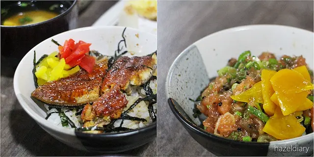 Another set that we tried is the Sanshoku Mini Don Gozen set S$36.80 which comes with three small rice bowls. Pork belly, unagi and mashed salmon with truffle oil. Every bits of the bowl gives us a chance to taste. My favourite was the salmon bowl with nicely mashed bits with natto and truffles infused.