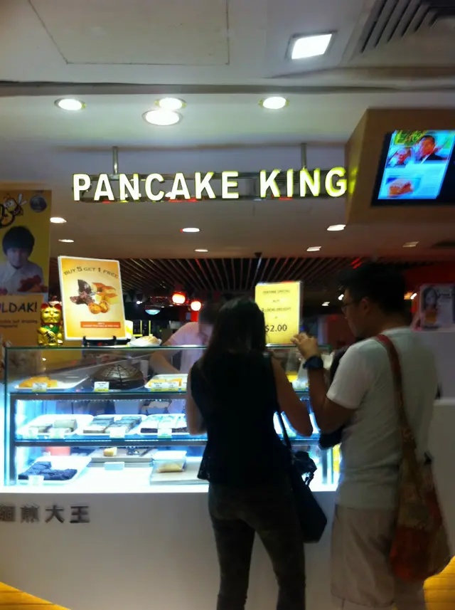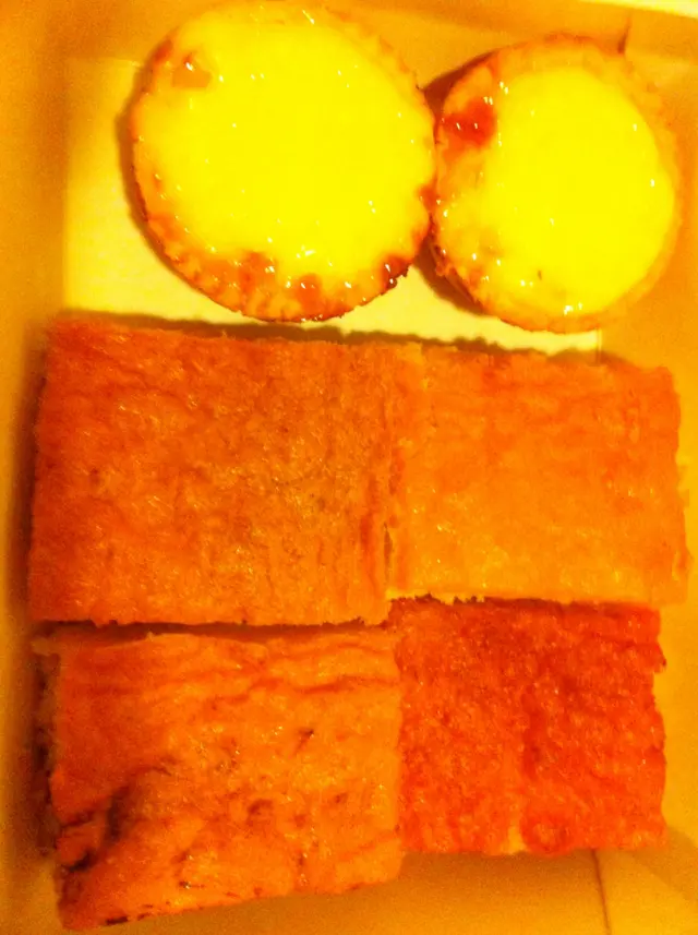 At level B2 of the shopping mall, there is a lot of stalls selling quick bites. Walking around, I smell cakes from the Pancake King's outlet. As there is a promotion of buying 5 pieces and having 1 piece free, I decide to get a box too. There is egg tart, butter cake, walnut butter cake, banana butter cake,and marble cake, costing $1.80 each. All smell good and hot too. Especially the egg tart which is quite soft and buttery. Best of it, there is so much filling as it is a deep shell tart.
