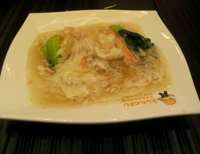 Have a simple treat from my friend in this Kungfu paradise outlet and was not really impress with the main course here. I have only requested for seafood horfun as was not really that hungry. When it presented to my table, I was really shock of the plain and unattractive colour on it. The thick rice noodles are smooth and chewy,but not much taste. And there are really minimum ingredients in it which make it so expensive and not worth the price. Moreover the prawns are quite soft and not fresh as well. Restaurant is comfortable and cooling and service is smily and friendly.