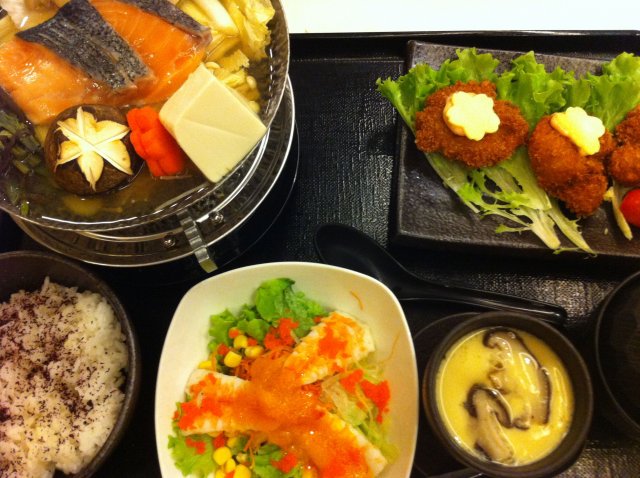 This set consists of Salmon Nabe (a type of soup-base), crabmeat salad, chawamushi, rice, soup, and a beautifully shaped fried fish cake. I like the crabmeat salad the most out of the whole set! haha! The salmon nabe was not too bad, salmon was a little too thin for my liking and as it was about$25 in total, I expected a bigger cut. The fried fish cut although pretty, was not very good as it was deep fried for too long. Making the skin a little hard. I couldn't identify what was on the rice (purple flakes) but i think it's some sort of sour ingredient? Tasted a bit funny.