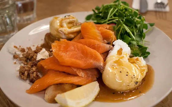 House Smoked Salmon Benedict with hazelnut bearnaise, fera, walnut crumble, petit salad & sultana bread. Generous serving of salmon slices and a pair of oozy egg benedicts. Both of these items have made up a wonderful brunch already.