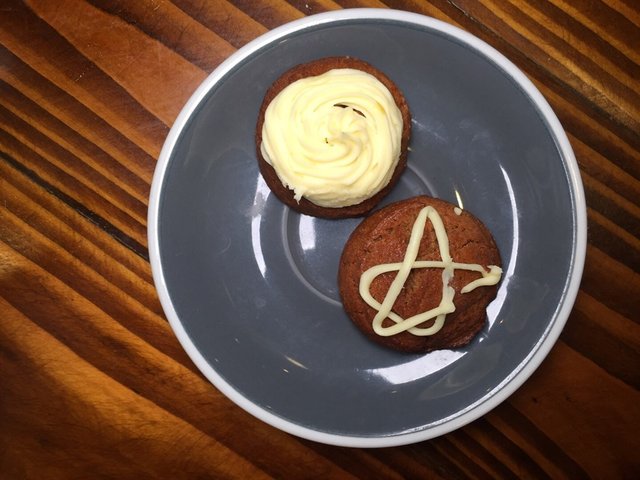 Ended the meal with a couple of Christmas cookies topped with cream cheese topping, complimentary from the chef.
