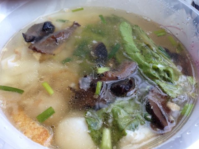went to kovan and get the kuay teow soup from this teochew fishball mee stall. the queue in the morning still okay, compared to the lunch time hours (they have long queues and waiting time might take about 10-15mins) whereas i waited for about 10mins. it is a big portion of kuay teow, big thickly-sliced mushrooms, the fishball is bouncy chewy, if can add more fish cake it will be more attractive. soup base so-so.