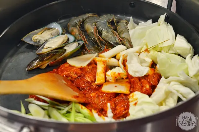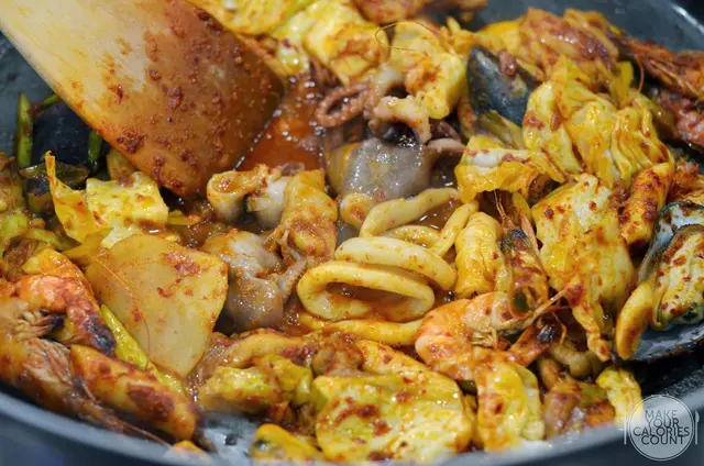 We faced some issues when it came to ordering as there were only two of us. The signature chicken galbi dish needed a minimum of 2 persons to order, so we requested if we could have a single portion in order to try other mains for variety but were turned down. The owner who stepped forward to serve us then explained that this is the Korean culture where they usually share the same food and eat together. With much reluctance and disappointment, we ordered Seafood with Chicken Galbi (S$48.90 for 2 pax).
