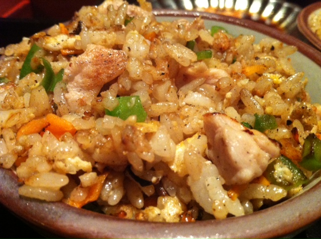 Fried rice with chicken, onion, garlic, carrots and bell peppers taste good too!