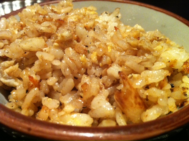 Garlic fried rice- A lot of garlic used and very fragrant! Garlic is cooked till slight brown in color. Just the correct fragrance!