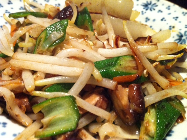Mixed vegetables consists of beansprout, okra, onions and shitake mushrooms. The shitake mushrooms is sweet and juicy. Onions taste nice.