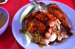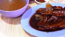 The FoodDecided to order char siew slices and chicken drumstick with my rice today.. I love chicken!! The char siew slices were quite good. I love the red colour of the char siew served.. The chicken drumstick was quite a big one as well. Another good thing about this stall is that every chicken rice ordered will be served with a bowl of complimentary soup! Good for soup lovers like me! Oh there is slices of cucumber served at the side too.…Read More