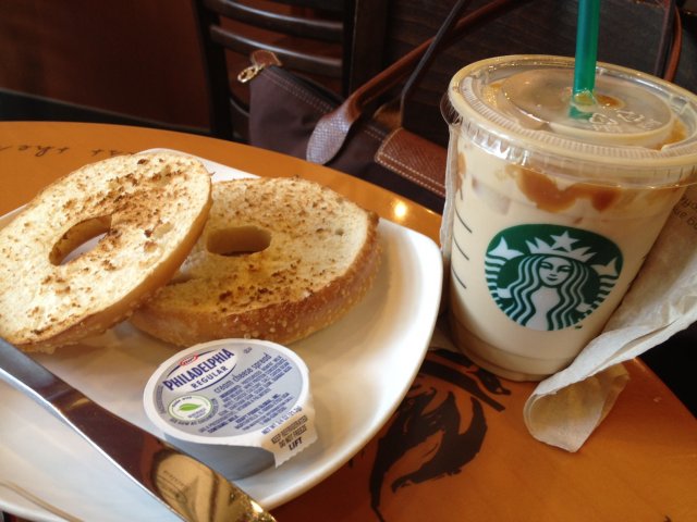 I like Starbuck's bagels because they are really worth $3.60 unlike the muffins and other pastries or cakes. I added a pot of cream cheese, because bagels taste best with cream cheese. For my drink, I chose my regular favourite, a tall Caramel Macchiato.The bagel was toasted but I felt that it was not warm enough. I like my bagels warm and toasty so the cream cheese will melt when I spread it on. Anyway, it was still a good breakfast and the caramel macchiato complemented the slightly salty cream cheese very well. If I have to say I don't like something, it would be the skin of the bagel. The thin glazed skin was very tough and hard to cut with the knife. Overall a good choice 8/10…Read More