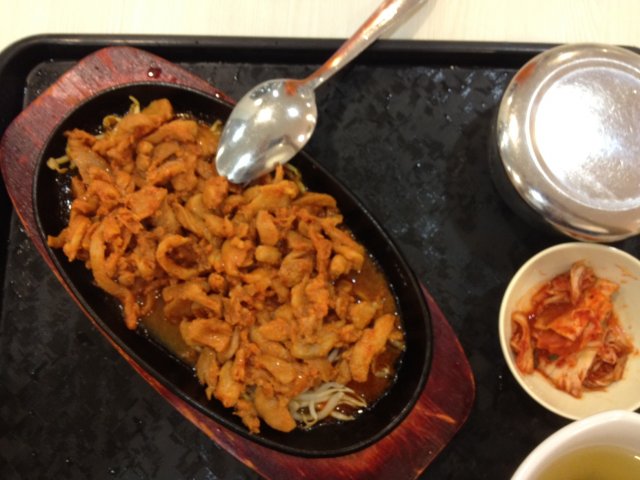 The Korean BBQ Chicken set comes with a bowl of rice, kimchi and soup. The kimchi was too sour for my liking and I ended up not finishing it. The rice was nice and chewy, and of the short-grain variety. I was given a generous serving of chicken which was slightly spicy. I was rather astonished to discover that the stall does not cook the chicken on the spot. Instead, they warm up the hot plate and scoop some pre-cooked warm chicken onto the hot plate. Overall taste test: 7.5/10…Read More