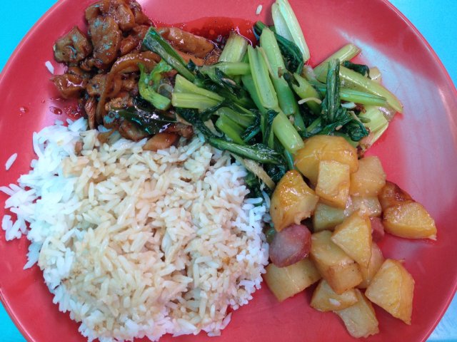 I ordered this for lunch as the queues at the other stalls were too long and I was in a rush. Rice was served generously but it was not well cooked and the gravy given was too little. The potato cubes were nice and the vegetables tasty and crunchy. The pork was too hard and I had a hard time chewing. All in all, just an average meal 6/10…Read More