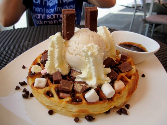 It was not easy to decide what to order because there were so many yummy options! Eventually, we ordered a Chocolate Fudge with Marshmallows ($8.50) to share. The presentation of the waffle look so attractive we could not wait to dig in!It is alfresco seating at Haato & Co and the wind kept the chocolate sauce that we were supposed to drizzle on the waffle flying. Nevertheless, we managed to devour this divine waffle without making a mess. The waffle was crusted on the outside and soft on the inside, making a perfect combination with the vanilla gelato. However, we felt that the gelato melted too quickly. We only left the place after a good solid 3 hours and that was probably the longest time I have ever sat down with friends by the riverside with some good waffles.…Read More