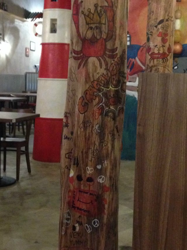 Was there yesterday for dinner with a friend. Excited about having "ang-moh" style crabs as it'll be my virgin moment for it but wasn't too sure about the thought of no cutlery dining; kinda unglam... Love at first sight with the whimsical wall doodles and the whole restaurant decor when I stepped in. Served with a handful of crispy fish flavored crackers as pre-meal snacks... Ordered the Sweet Potato Fries and the Captain's Choice Combo consisting of Sri Lanka Crab and Shrimps with baby potatoes in hot fully loaded sauce. The sauce was very addictive; combination of both Cajun and Garlic Butter. There is a hint of spices perfuming the seafood, and the different layers of flavors in the sauce is pretty distinctive... Spice level goes from mild, medium to hot depending on individual preference. The hot level I picked did bring a little heat to the party but it's not extreme spiciness. The whole marriage of freshness of the seafood, the firm baby potatoes and the irresistible sauce made me getting all my fingers messy and uncontrollably licking the sauce off them repeatedly... There's also some lime and salt pepper provided... Tried squeezing some lime juice onto the shrimps and it bring a different refreshing taste... Zero feeling of unglam as every diner had their fingers soaking in the sauce, getting busy with the food. Messy is the new sexy... The restaurant operators, Eldric and Nigel were very friendly, came over to have a few small chats, making sure that the food, service etc were all good and if there's any suggestions for further improvements... The only con was the menu, personally I find it a little limited on choices. However they are in the midst of fine tuning it, and will be adding more items to it. Heard that they will do a new flavor or type of seafood monthly, I will definitely return for their possibly clam special next month... …Read More