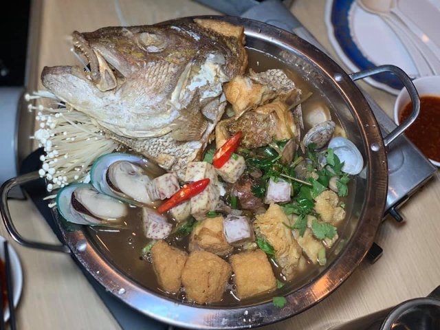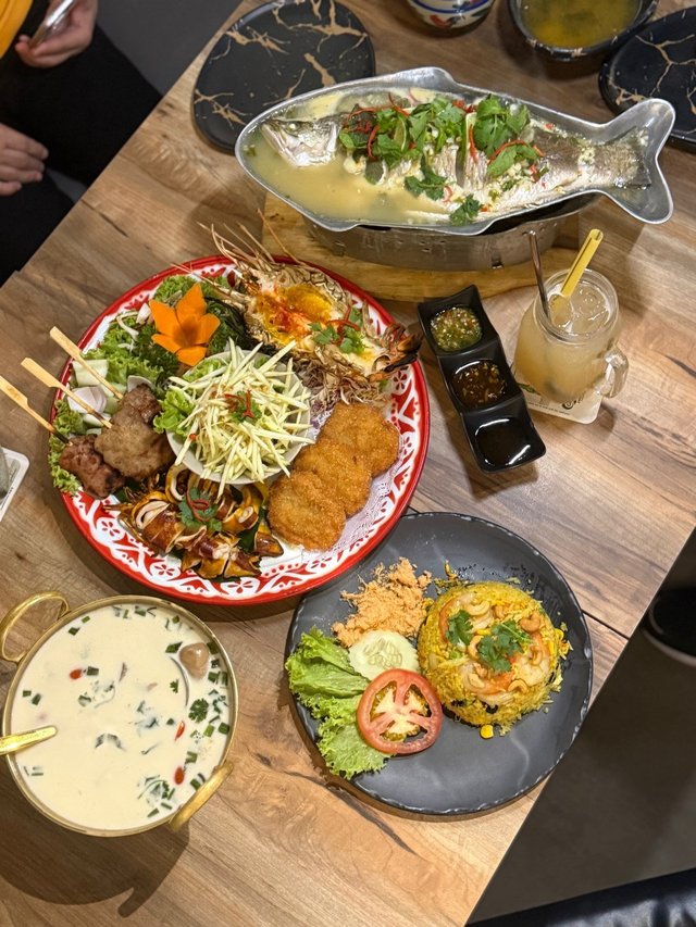 Recently visited Kin Kao Mai, which was located a short distance from the MRT station. Although it not enclosed, the place was cooling and well ventilated. As my mom preferred non spicy, the dishes were requested to be non spicy or less spicy, which the staff took note of.Kin Kao Mai Special Platter (S$58++)Giant prawn, squid, prawn cake, moo ping, mango saladServed with 3 different sauces : sweet chilli sauce for the prawn cake, spicy seafood sauce for the seafood, and a tangy sauce for meat skewerThe squid was smoky chewy, while the huge prawn was smoky juicy. Love the tangy mango salad!Pla Neung Manao (S$35++)Steamed sea bass with lime and garlicThe fish was chunky and fresh.Tom Kha Gai (S$12++)Thai chicken in coconut soupLight milky soup with tender meat.Khao Pad Sappared (S$14++)Pineapple fried rice with prawns Packed with pieces of pineapples, raisins and cashew nuts.Wash down the meal with a refreshing glass of Peach Frizzy (S$4.80++)…Read More