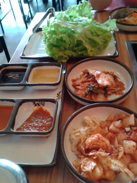 I dare not say I've visited many authentic Korean BBQ restaurants in Singapore but compared to the few restaurants I've had the opportunity to visit that was open & run by Koreans and having tried some while in Korea, this place is a disappointment. We ordered their lunch Set A which consisted of beef + pork meat + kimchi soup + rice + couple of free flow side dish.Free flow plain water comes at $0.30 per person/glassLunch order hr: 11.30am - 2.30pm1st disappointment: KimchiThumbs down for this free flow side dish. Not only is it not spicy at all, and I mean really it pales in comparison with the sweetest chilli sauce, it was tasteless. There isn't anything authentic or even remotely similar to what kimchi is. Saving grace: Sweet potato, lotus, bean sprout (really love this) & their fluffy white rice cooked just to the right softness. The serving of the whole set is more than enough to fill our tummy to the brim so there's no need to worry about the seemingly small portion of meat served.Their kimchi soup was much much better and the sauces they provided were our favourite among all other things. Don't be shy to ask for a refill shld ur sauce run out as they don't charge extra.Service standard & staff attitude: Sunday lunch crowd with around 3 waiters/waitresses.We had a little accident and poured some plain water on the table, wanting to get staff to provide cloth or even better help clean up the slight mess but none of the staff was attentive enough to notice us. Lunch order officially stops at 2.30pm and we were not informed of any need to clear the place, only asked to settle bill around 3pm first as their cashier is closing, other than that we continued at our pace barbecuing till around 4pm (Note: we only entered the place at nearing 2.30pm and it takes a while for food to be served so give or take its about 1 & 1/2 hour of chit chatting and enjoying a Sunday gathering.) They are newly opened and so we were given promotional $10 voucher upon next visit.…查看更多