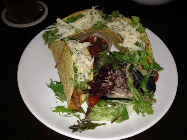 This is actually a review of a second visit to The Mad Poet - a place I had to return to after the success of my first trip (see link here for the review of the first visit with different photos and narrative: http://www.thedarksmile.com/blog/review-of-the-mad-poet-gastro-bar-20-cross-street-01-2324-china-court-singapore).I have only ever been to The Mad Poet on a Saturday lunchtime, and it is pretty quiet at that time of the week. Given its trendy, dark decor, I'm guessing they get most of their business in during the week, servicing the well-heeled types working in the various offices round and about. But they make up for the weekend lack of ambience with some pretty cool tracks playing in the background, so no complaints here.On this second visit, my companion and I went for the Cajun chicken and mango salad, the beef tacos and the juicy prawn pasta (yes, three mains for two people... call us greedy). I washed mine down with a bottle of 4 Brothers Toffee Apple cider: it was pretty weak stuff at 4% ABV compared to an ordinary cider, but I must say it was delicious. As the name would suggest, it tasted like a gently fizzy, burnt caramel and super-sweet apple juice concoction - I'd almost call it a kid's drink (by which I mean no criticism), if it weren't for the alcohol content:The chicken and mango salad was as impressive as the first time around - thickly sliced, the skin seasoned perfectly, the homemade honey and mustard seed dressing perfectly balanced, not too heavy-handed on the parmesan cheese, large crunchy salad leaves:The juicy prawn pasta was another hit: spaghetti coated but not drowing in garlicky, creamy sauce, and a generous helping of large prawns (and yes, they were indeed 'juicy'):Finally, the beef tacos. If The Mad Poet slightly let itself down, it would be here: don't get me wrong, I gobbled these down in double-time, and have no complaints per se... but I would say that I have had better-seasoned, and certainly spicier, tacos elsewhere. In fairness, this dish probably suffered by comparison with the other, top-notch dishes that we were enjoying that day, and ended up paling by comparison:Having found room for three mains, we had no space left for dessert, but I discuss the soup of the day and dessert in my earlier review elsewhere (http://www.thedarksmile.com/blog/review-of-the-mad-poet-gastro-bar-20-cross-street-01-2324-china-court-singapore).Taking the two visits together, I have to say that I am huge fan of The Mad Poet. On this most recent trip, we got away for SGD 50.60 - given that that included alcohol (an imported rarity at that), and 3 mains at a mouth-watering SGD 10 each (that's ten bucks only, folks), this is a rare combination of high quality and value. Friendly and efficient staff, too. A strong recommendation: do support them on the weekends!:)…Read More