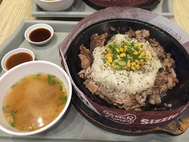 This is our first time having Pepper Lunch in a food court. There is a promotion for double beef rice at $6.90 which we think is cheap. All the meals come with a bowl of miso soup as well. We must say that the miso soup is good & tasted similar like those japanese restaurant miso soup. The preparation of the beef rice is pretty simple. The staff just need to put rice into the preheated hot plate & placed raw sliced beef around the rice & add some corn & drizzle with some sauce over. We just need to let the beef cook on its own & turned them slightly till cooked on both sides. Thereafter, drizzle sauces (garlic sauce/honey sauce are available at the stall counter, self services) over the rice/meat & mix them till combined. The beef becomes very flavourful after the sauces are added, very tender beef slices ;) Love the rice with the corn niblets, adding a little crunch & enhanced the flavour of the rice. There are still many other set meals which we will like to try next time. Will definately be back again, thumbs up for the food :)…Read More