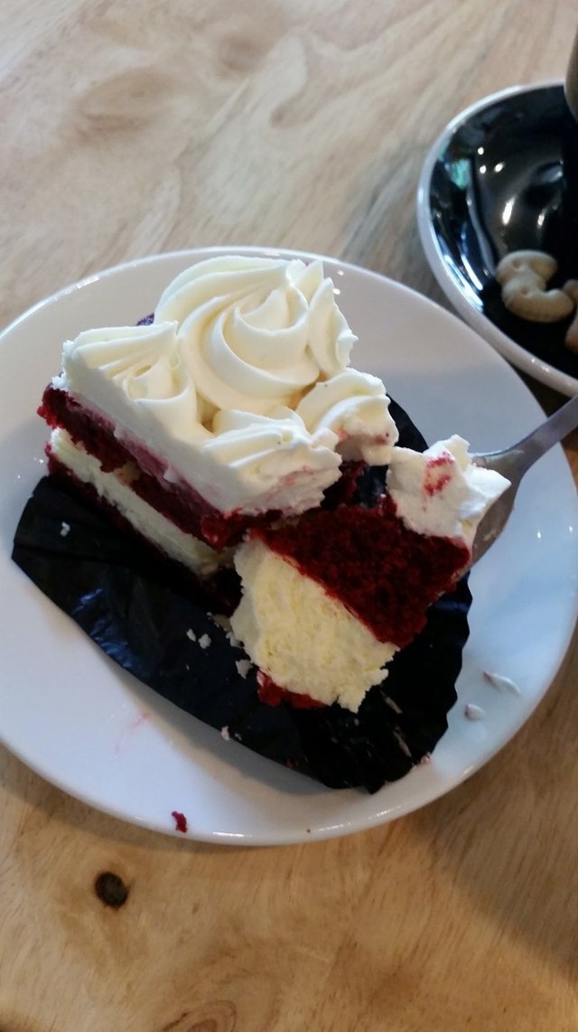 The Red Velvet cake is pretty unique with a layer of red velvet and a layer of cheesecake. The price range is good. bout $5.80 for a piece of cake, decent sizeThere is a layered of cheesecake with the velvet cake. The cream cheese was excellent and the cake doesn't taste too sweet. overall the cheesecake and cream cheese compliments the red velvet cake! However, cheesecake usually make me feel very full , so really depends on your craving that moment.The cake is very moist and they chill the cake in a way it makes the cheese cooling and melts in the mouth. overall I like the cakes and I will return again for the cakes!Read on https://ginevi.wordpress.com/2014/06/23/the-fabulous-baker-boy-vs-the-bakery-chef-which-is-better/…查看更多
