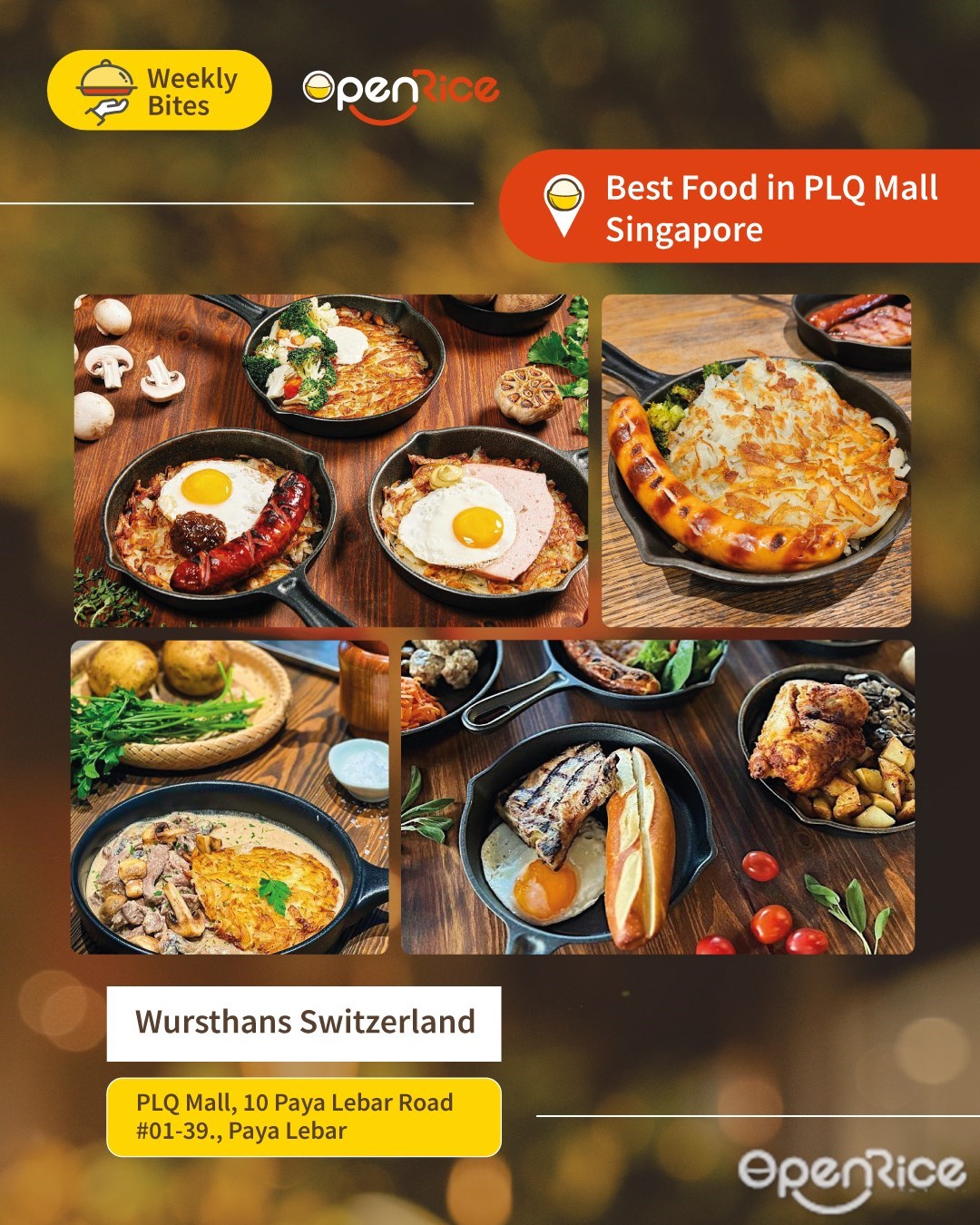 Wursthans Switzerland是新加坡首家專注於提供正宗瑞士料理的概念餐廳,強調現代與創新、健康與美味的融合。餐廳裝修設計時尚舒適,作為旅程中的休息站十分合適。喜歡歐洲料理的話不妨前來試試他們集香脆與香濃於一身的招牌菜Swiss Rösti(瑞士馬鈴薯煎餅)、香腸拼盤與瑞士肉餅三文治!