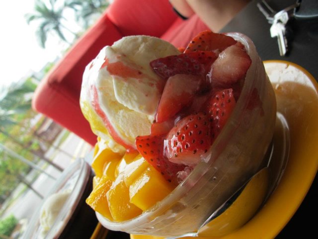 We chanced upon dessert bowl at a inconspicuous location along Serangoon Garden Way when we drove pass the row of shop houses. The name "Dessert Bowl" kind of ring the bell and we took the opportunity and headed for the 2nd Floor.Dessert Items and photos were pasted along the stairways up to Dessert Bowl and you can sense the intermittent strong durian and mango fragrance once you swing open the glass doors.As soon as you reached the 2nd level, you will be greeted by the sunflowers and the sudden splash of greyish black environment.Seating places were spacious with 4 sofa seating by the side by side to the glass windows looking out to the roads. Furnishings were simple with movable tables and stools on the cement screed flooring.Noted as their topped recommendation will be Durian Mousse. I must admit I'm not really a die hard fan of durian but the amount of flesh given in the middle was great. Mousse tasted good and even having the whole bowl of it, you just would not feel cloying.Colors of Aiyu Mango comes in 2, Orange and white. Aiyu was wobby with mango cubes. Coconut milk is added into the dessert bowl. On this hot weather, the bowl of chilled desserts really help us to battle with the heat. On a side note, this dish is classified as their 2nd popular dishes after Durian Mousse.The miniatures display of typical Hong Kong Stalls had captured my attention.Display from Bakery to Roasted Meat and Cha Chan Ting were a good introduction to what you can see in Hong Kong.Since I had visited Hong Kong 2 months back, they little stuffs were a reminiscent of my trip.With limited stomach space, we didnt get a chance to try their Mango Pomelo which is the 3rd recommended and popular dessert. When will I be back again?…查看更多