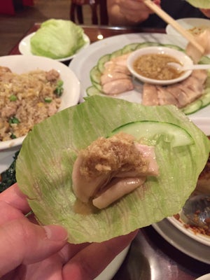 朋友知道我去新加坡,所以推薦我一定要食呢一間三盅兩件特別係佢哋嘅雞喎我一個人食叫咗細粉,不過都係好大份食唔晒最後打包走嘅,真係好好食爆汁嘅呢一隻雞係用生菜包住雞同埋攞少少沙薑就咁爆口食嘅真係超級好食,但係再好食嘅嘢食太多都會厭,所以都係打包帶走佢哋個砂礓醬真係好好食㗎,超級香本身諗住淨係食雞好奇怪,所以叫多個飯做煮食啦,叫咗呢個鹹蛋黃蝦蛋炒飯,啲蝦好大隻,所以啲肉就唔係好鮮嫩,個炒飯就冇乜特別普通蛋炒飯囉一個人真係好難食呢一種餐廳,叫太少又試唔到好多款餸,叫太多我食唔晒。雖然好食但今次真係飽到傻咗