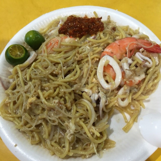 One unique thing about this stall is their own-made sambal belachan which is very SHIOK ! The owner also use thin bee hoon together with the yellow noodles. What I like about the thin bee hoon is that it fully absorbed the goodness of the prawn stock hence very delicious. Ingredients such as prawns and sotong are all very fresh too. I ordered the $5 version as I am sharing with my mum and overall is a must try for all Hokkien mee lovers ! :) …查看更多