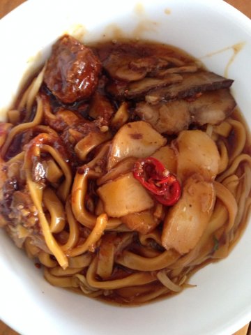 This was my lunch today! I bought it early on my way home and left it there for almost one hour before I ate it. I thought the noodle was going to be very soggy but surprisingly, it turned out well. The noodle was still chewy and the gravy was still thick and starchy. I asked for extra vinegar as I love it sour. It tasted fragrant with the minced garlic. The lor mee was served with fish cake, ngor hiang, pork slices, cut chilli etc.查看更多