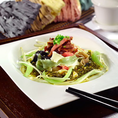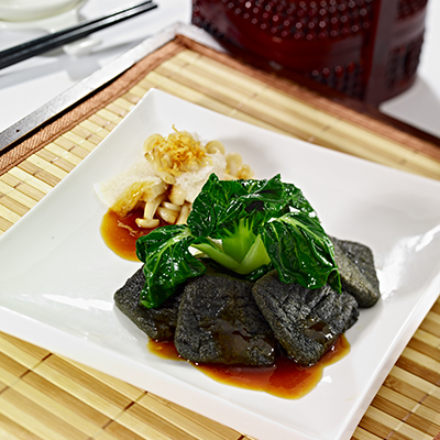 Charcoal Beancurd Braised With Bamboo Fungus And Pine Mushrooms