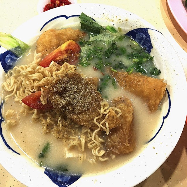 This morning the family decides to have breakfast at the coffee shop. There is a number of stalls at the coffeeshop. I decide on Kway chap at the braised duck stall as I have not eaten this dish for a long time. For a one person's serving, it costs $3.50. One can add on duck meat for $0.50 more. The staff will take down your table number as well as your payment for the food. Food will be served to you. The serving is mostly sliced fish cakes and braised bean curd puff. There is also the braised pig's offal but I feel the amount served is too small and tastes a bit dry. There is also braised hard boiled egg and braised tofu which are quite well braised. The dish of flat, broad rice sheets is quite smooth and tasty. Overall still not bad except for size of serving.…查看更多