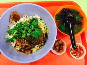 I am a huge fan of Teochew Style Bak Chor Mee (Minced Pork Noodles) and have always visited Hill Street Tai Hwa Pork Noodle (Lavendar) located at Crawford Lane to satisfy my craving.Ah Kow Mushroom Minced Pork Mee 亚九香菇肉脞麺 located at Hong Lim Food Centre has been in operation for more than 60 years, like Hill Street Tai Hwa it also specialises in Teochew Style Bak Chor Mee. I have been eyeing this stall for sometime and took the opportunity to try this on a Saturday afternoon. I arrived slightly after 1pm and saw a long line of people queuing in front of the stall. There was more than 10 people in the queue in front of me. I contemplated patronising some other stalls as I was starving. But in the end, my desire to try this won the battle and I found myself queuing at this stall.Other than the long queue, the only tell tale sign that this stall is famous/popular is the Singapore Hawker Legends Makansutra signboard showcased at the left of the shop front. Ah Kow Mushroom Minced Pork Mee offers just two items; Mushroom Minced Meat Noodle and Teochew Dumpling Soup which comes in 3 difference prices (again similar to Hill Street Tai Hwa). It also offers 6 types of noodles and the prices for adding extra ingredients were clearly stated on the menu pasted in front of the stall. The queue was extremely slow moving and I only got my food after queuing for 40 minutes! While I was in the queue, the greedy side of me decided on getting a Mushroom Minced Meat Noodle (Mee Pok) $4 and Teochew Dumpling Soup $4. After all, I had come down just for this and since I had to spent so much time queuing I may as well kill two birds with one stone and try both! Logical? Mushroom with Minced Meat Mee Pok $4As with all authentic Teochew Style Bak Chor Mee, vinegar (an essential sauce) imported from China was added into the Mushroom Minced Meat Noodle (Mee Pok) $4. The ingredients which included minced meat, meat slices, braised mushrooms, dumplings and fried crispy flat fish (扁鱼) were fresh. I particularly liked the fact that they were generous with their fried crispy flat fish and braised mushrooms. However, the dumplings were disappointing as it lacked in terms of flavour and bite. Luckily, the special chilli sauce complement well with the vinegar (I requested for more vinegar). Teochew Dumpling Soup $4The Teochew Dumpling Soup $4 reminded me of Xing Ji Rou Cuo Mian 兴记肉脞面 at Bedok 85 as it looked cloudy with minced meat floating in it.Teochew Dumpling Soup $4Teochew Dumpling Soup $4The Teochew Dumpling Soup $4 consisted of 8 pieces of dumplings, minced meat, braised mushrooms, fried crispy flat fish (扁鱼), seaweed and Garland Chrysanthemum (Tang O).It was a terrible mistake ordering this. The dumplings as mentioned earlier was disappointing. To add on to this, the soup was bland although it looks so flavourful in the photos above.. Overall, the Bak Chor Mee was a decent. It was better than most other stalls, but not a die die must try. Moreover, Hill Street Tai Hwa's version was much better. As for the Teochew Dumpling Soup? My advice would be to give it a skip.Ah Kow Mushroom Minced Pork Mee 亚九香菇肉脞麺 (Hong Lim Food Centre)#02-42 Hong Lim Food Centre531A, Upper Cross StreetOpening Hours: Thurs to Sun 8am to 5pm Close from Mon to WedView FoodieFC's Singapore Food Map in a larger map…查看更多