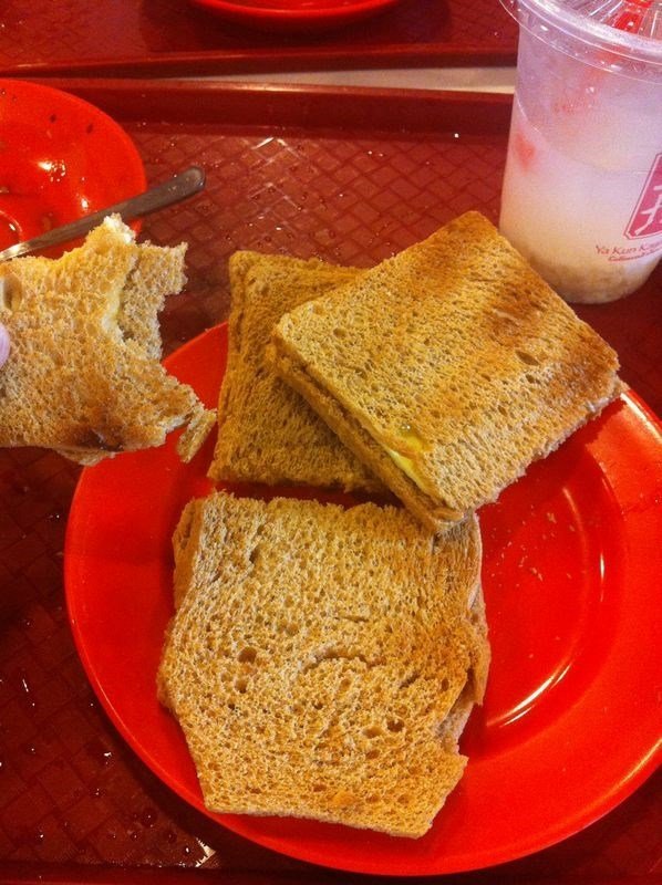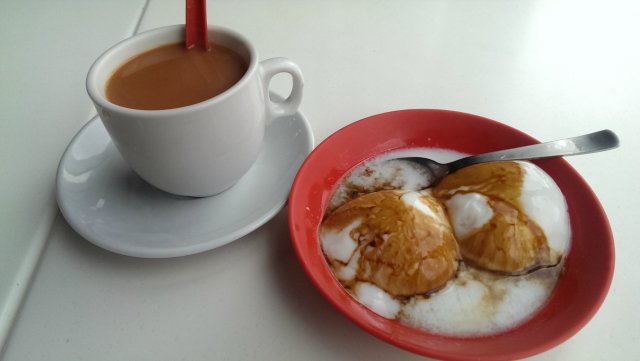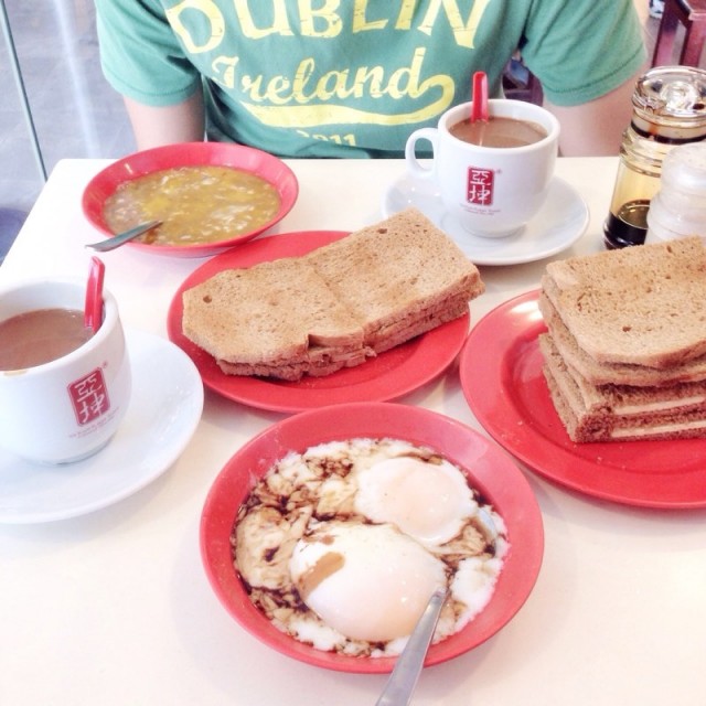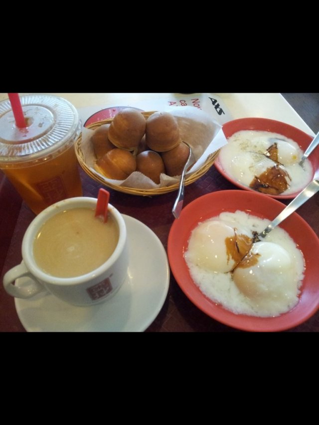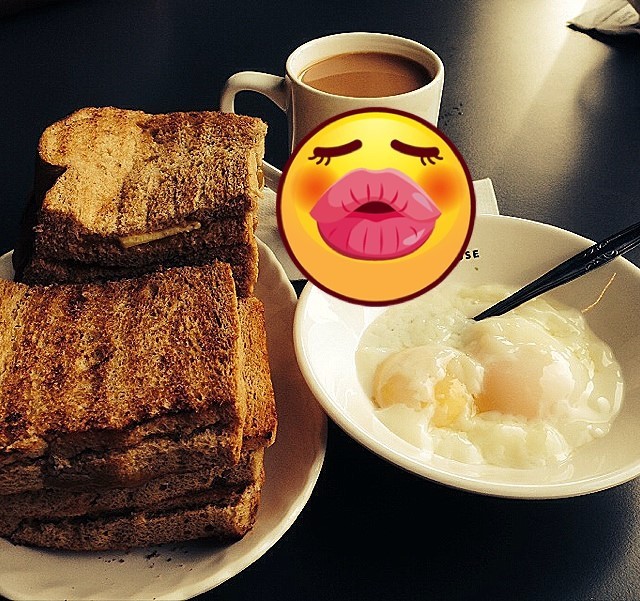 Traditional kata butter Toast with soft boiled eggs + coffee