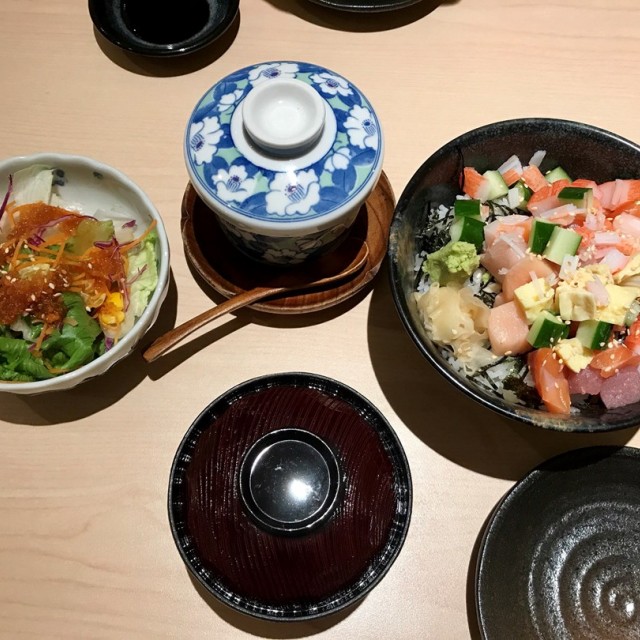 The restaurant was headed by Executive Chef John Phua, used to be from the well known Fukuichi Japanese Dining, which used to be located across the street at Triple One Somerset. Fans would find a number of familiar items on its menu.Kani Tofu ($6++)Crab Meat Bean CurdFelt that it should had been renamed pitan tofu as the taste and smell of century egg was the most distinct here. The rich creamy century egg sauce topped on the silky smooth tofu, making it a party in the mouth.. Chirashi Zushi ($35)Box of sushi rice topped with assorted sliced raw fishMoist plump short grain rice which tasted slightly sweet, topped with shredded seaweed, sakura denbu 楼田麩 (salty sweet, fluffy pink flaked fish condiment), takuan (pickled radish), gari (pickled ginger), wasabi, mirin marinated mushrooms, cucumber slices, tamagoyaki (japanese rolled omelette), crab stick, white fish slice, snapper slice, tuna slice, salmon slice, ika (shredded squid), ikura (salmon roe), ebi (prawn), scallop.It looked so colorful with so much liao on top, that one simply forgotten about the sweet moist rice below. The plump slices of raw seafood were fresh and smooth in texture, without any fishy taste.Toumorokoshi Kaikiage ($15++)Corn Tempura The corn burst out with sweet juice as one bit it in the mouth. Would be better had the tempura batter be crisper.Kinoko Tofu ($10++)Deep Fried Mushroom Bean CurdThe bean curd was packed with mushrooms inside. The texture was most interesting. Instead of the silky smooth which one was expecting, here it was more like gooey texture, which reminded on of Orh luak.Su Gyomen ($13++)Hot Fish NoodlesInstead of ramen, the noodles was made of fish, served hot in soup with fish cakes. It was like eating fish cakes which looked like noodles with QQ texture.…查看更多