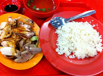This chicken rice stall is located just opposite one of the famous carrot cake stalls -serving up delectable Hainanese Chicken Rice to patrons.A $3 portion would get you a plate of fragrant chicken rice, a side plate of chicken and a bowl of soup.First off, the rice is really super fragrant -the grains are slightly oily and the texture is near-perfect. There is a hint of ginger in the rice, and it's savouriness makes it perfect to just have on its own. The rice portion is also just nice -guys may want to "加饭“ (or add rice) haha.The chicken is smooth and not too dry, it's perfect with the oil and soy sauce -not too oily and not too salty either. The thinly sliced chicken gives it a great texture. The chilli isn't too spicy, I could have done with spicier chilli! It's tangy and packs a punch though, when eaten with the ginger (that was a tad watery to be honest), it's heavenly :):)The soup is tasty too -it has a slightly medicinal aftertaste that I cannot quite put my finger on. It's not unpleasant though, it does have a nice touch to it and it complements the entire dish well.All in all, this $3 is well worth your money!! I recommend asking for breast meat -it's not too dry because of the thickness of the sliced chicken. Definitely worth a try.…查看更多