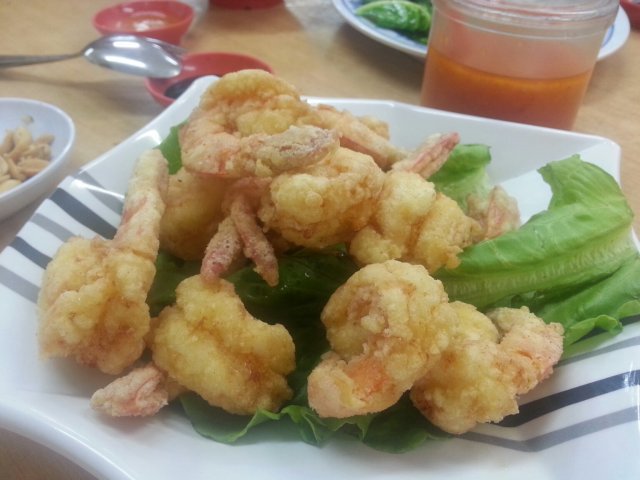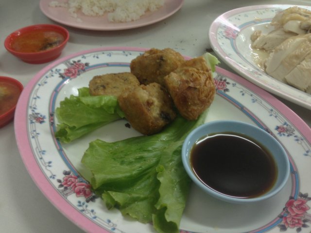 I'm a bit disappointed with the rice offered here, as it tastes more like ordinary white rice instead of chicken rice. - Half of a steamed white chickenThe chicken itself was not smooth and tender enough.- Prawn rollsThe prawn rolls were much better, as they were very crispy and the filling was tasty.- Pumpkin prawnsThe pumpkin prawns were also good. They were fried to a nice crisp and coated with a smooth tasty pumpkin sauce. A healthy alternative to salted-egg prawn.- Stir fried baby kai lanThe baby kai lan was average-tasting.Perhaps this stall will fare better as a zi-char stall instead of a chicken rice restaurant......…查看更多