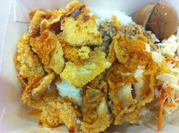 My first time trying out Snackz It. I've passed by this little stall many times on my way home and know that it sells Taiwan-style chicken cutlets, which is renowned and very popular among Singaporean youths these days. I ordered the Chicken Bento Box ($5.50) as takeout for dinner. It came with rice, a chicken cutlet, one braised egg and some cabbage that served as salad. Their chicken is fried upon your order so it was fresh and hot upon serving. You can see the pepper flakes on the chicken skin and know that it was well-marinated. Chicken skin was crispy and the meat was tender. The serving of rice was so huge that it can easily feed 2 people! …查看更多