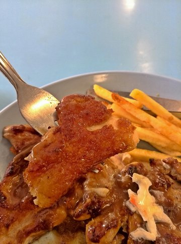 There was quite a number of Golden Rooster western food stall around Singapore, but they vary in tastes and even the gravy used are different.There was a Golden Rooster stall nearby my house which I did not realise until now. Their prices were good too, at $5.50 for a chicken chop.For Gooden Rooster chicken chop, I especially like their deep fried bun, the crispy skin one the outside and fluffy bread inside. The coleslaw was good too, sweet creamy sauce with crunchy chopped cabbages.The grilled chicken meat had a crispy skin but the chicken meat was not as meaty, slightly over grilled. The gravy of the chicken chop was good, it tasted like teriyaki sauce, it went well with the grilled chicken chop.Overall, this Chicken Chop was good, but the Clementi Central brnach was even better.…查看更多