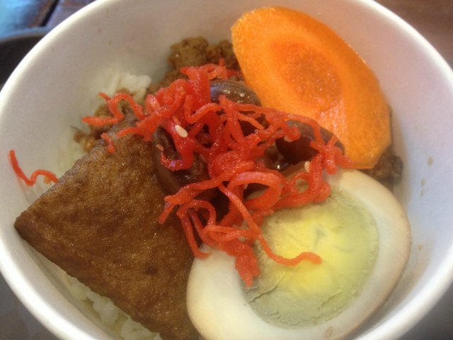 Independent-able dinning idea, it was quick meal fix no matter in office cubicle or long travel journey. Menu was hassle-free, just simply pick your favourite main course and beverage, not difficult to understand. Comforting shape with Braised broth and Fried Chicken Cutlet, there was fluffy rice hidden at the bottom. Drooling tempted to start it up, presentation caught my fully attention. Starchy gravy coated over the Dried Tofu, it was juicy and well accompanied crusty fragrant chicken bite. Served along with a Winter Melon Tea, refreshing drinks was getting rid of the greasiness after Bento. Approximately $7.00, I was so addicted for it. …查看更多