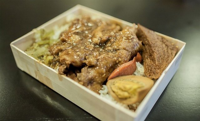 If you are coming during the peak hours, be prepared to wait. Was there on a weekend, and place is still pretty crowded around 2pm. Waited for a nice 10-15 minutes before we got a seat, and our food being served shortly as orders were taken while waiting.Menu is very limited, with less than 20 options. A fast and easy meal for working adults and those who prepare to get on their way soon after a meal. Really can't resist ordering this, Fried Intestine ($3.50). It may not be as flavorful as those we had in "Kway Chap" stores. Perhaps lacking of the braised sauce, it will still do good with some chili sauce.Fried Chicken Cutlet ($4.00). Meat is tender, and with a tinge of saltiness. Something like "盐酥鸡", pretty addictive. We totally skipped the local bento, and aimed straight for the traditional bento, which I believed is more to the Taiwanese favorites.Stew Pork Belly Bento ($6.80). Comes with vegetables, half of a braised egg, a thin slice of Taiwanese sausage, and beancurd. For having pork belly bento, do not expect to have mostly meat and no fats.For more details, please visit http://foodesteem.blogspot.com/2014/06/taiwan-railway-bento.html…查看更多
