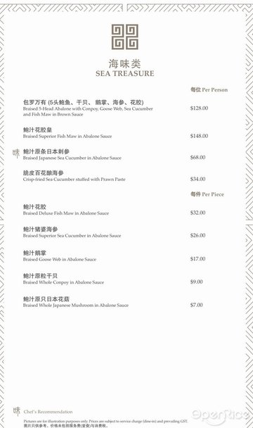 For pictures and full review, pls visit:http://madamechewy.com/2014/07/16/taste-paradise-dim-sum/During lunchtime on weekends, it’s the norm to spot crowds lingering at the entrance of award-winning Taste Paradise. The interior is grand; it simply looks like no expense has been spared to make this place look as opulent as it can be. Occupying the span of an entire wall are life-sized portraits of China’s illustrious Qing emperors.Generally, Taste Paradise’s dim sum are excellent in quality, with a handful of drool-worthy items what I shall describe in more detail. We had quite a number of dim sum so here goes!I can’t say no to anything fried!Crispy Spring Roll with Smoked Duck Meat ($4.80). Amongst the fried dim sum, the spring roll stood out from crowd, thanks to its aromatic savory duck stuffing. Plus, the skin is so crispy you can hear the crunch in your head!Deep-fried Prawn in Bean curd skin roll ($5.80).Deep-fried Taro Puffs with Diced Chicken and Prawn ($4.80) was well-fried, not at all oily, and packed with filling.Deep-fried Prawn Balls with Almond Flakes ($5.80). Loved the combination of springy prawn balls, crunchy almond flakes and burst of flavor from the caviar.Deep-fried Prawn with Mango Roll ($5.60) was a tad too oily.Steamed morsels will now take centre-stage.Ahhh…my one true love- Liu Sha Bao. Pillow-y buns encasing intensely-flavored salted egg yolk custard that oozed endlessly. I always order 2 baskets of Taste Paradise’s Steamed Custard Bun ($5.80).Steamed Prawn Dumpling “Har Kau” ($5.80) and Steamed Pork Dumpling “Siew Mai” ($5.80) were ok, nothing to shout about. Royal China’s Har Kau scored better compared to Taste Paradise for fresher, juicer and larger prawns.Steamed Bean curd and Bacon with Black Truffle Sauce ($5.80).Steamed BBQ Honey Pork Bun ($4.50). Peel open the light and fluffy bun to reveal chucks of lean pork meat which were not overly sweet.For something more filling, Steamed Glutinous Rice with Chicken wrapped in Lotus Leaf ($4.60) is your best bet. The glutinous rice was sufficiently steamed and hence soft and lightly sticky.Baked BBQ Honey Pork Bun ($5.40) is a bit of a misnomer. I believe most would expect smooth brown buns instead of snow-capped ones like these. A better name would be Polo baked BBQ Honey Pork Bun. These addictive buns are a combination of sweet, savory, crispy and crumbly.Bite-sized Mini Egg Tarts ($4.20) were satisfactory- wobbly egg custard nesting in flaky puff pastry.Beautifully flavorsome, slightly spicy and ethereally soft is the XO Carrot Cake ($7.80). The dish just the right amount of bean sprouts for contrasting crunch. Taste Paradise’s XO carrot cake is the best I have had so far. A must order!Steamed Cheong-fun with Dough Fritter ($4.80)Steamed Cheong-fun served with Deep-fried Eggplant and Minced Pork ($5.80) looks aesthetically alarming. The rice roll’s pink tinge reminded us of red/pink plastic bags from convenience stores. The eggplant and mince pork filling was moist and tasty; personally, I wasn’t too fond of this itemBaked Fillet of Cod with Chef’s Miso Recipe ($16/portion), one of Taste Paradise’s signature dishes, easily won me over. The melt-in-the-mouth cod tasted slightly fatty and saccharine at the same time. I’ve got to hand it to the chef for the splendid miso paste, which was a fine companion to the firm and flaky cod. This dish is part of the main menu and is available during lunch and dinner.I love dramatic entrances!Chilled Mango Puree with Sago and Pomelo topped with Coconut Ice cream ($6.80) – a luxe rendition of the popular dessert.Mention-worthy is the Chilled Avocado Puree topped with Coffee Ice cream ($6.80) – a unique combination, which worked execeptionally well. A must try!You can count on Taste Paradise for consistent fine quality dim sum. On weekends, dining here is a harried affair as there are 3 seatings (11am, 12.30pm, 2pm) and diners need to vacate their table 15 minutes before the next time slot. Reservations is a must if you do not wish to be turned away.Taste Paradise used to be my go to place for dim sum, but not anymore because of a recent unpleasant experience. Because diners in the first seating were late, we had to wait for 30 min for our table, despite having a reservation. I don’t mind waiting for 15 mins, but half an hour is ridiculous.…查看更多