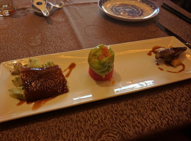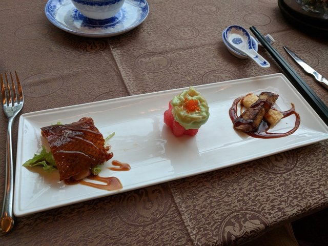 Peking Duck, Wasabi Mayo Prawn, Seared Foie Gras