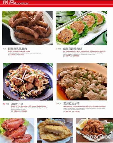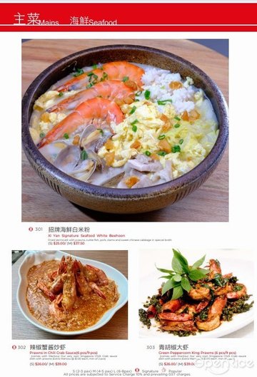The restaurant was relatively quite for Monday night with about a couple tables occupied. Service was fast.Pork Patty with Salted Fish and Water Chestnut 鹹魚马蹄煎肉餅 ($6++/ petite)The patties looked simple and a tab dry but it was savoury and crunchy inside.Salivating Spicy Chicken 囍宴金牌口水雞 ($6.50++/ petite)It looked quite spicy with the layer of chilli oil on top. There was cold silky smooth potato noodles buried underneath the pile of chicken slices and century egg wedges. While it was spicy, it was refreshing cold at the same time.Deep-fried Shrimp Paste Fish Fillet with Pomelo Water Chestnut Salad 香茅蝦醬炸鱼柳配柚子沙拉 ($9++/ petite)It looked different from the picture. An odd combination which worked refreshing well. It was a party in the mouth with savoury shrimp paste, juicy tart pomelo and sweet dressing.Fried Lo Shi Fan with Xi Yan XO Sauce 客家XO醬干炒老鼠粉 ($12.80++)Simply looking with wok taste and crunchy feel. Thought that it would be spicy with XO sauce but turned out that it was not.…查看更多