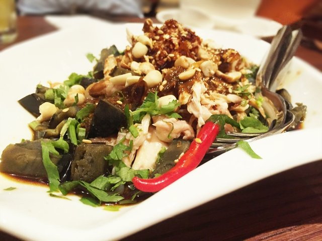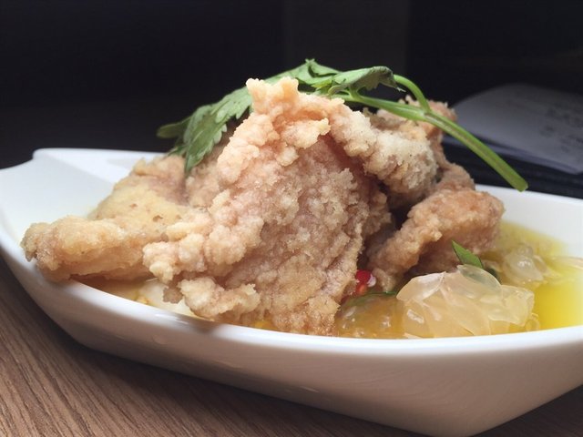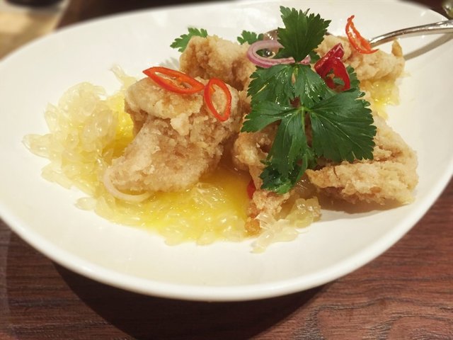 The restaurant was relatively quite for Monday night with about a couple tables occupied. Service was fast.Pork Patty with Salted Fish and Water Chestnut 鹹魚马蹄煎肉餅 ($6++/ petite)The patties looked simple and a tab dry but it was savoury and crunchy inside.Salivating Spicy Chicken 囍宴金牌口水雞 ($6.50++/ petite)It looked quite spicy with the layer of chilli oil on top. There was cold silky smooth potato noodles buried underneath the pile of chicken slices and century egg wedges. While it was spicy, it was refreshing cold at the same time.Deep-fried Shrimp Paste Fish Fillet with Pomelo Water Chestnut Salad 香茅蝦醬炸鱼柳配柚子沙拉 ($9++/ petite)It looked different from the picture. An odd combination which worked refreshing well. It was a party in the mouth with savoury shrimp paste, juicy tart pomelo and sweet dressing.Fried Lo Shi Fan with Xi Yan XO Sauce 客家XO醬干炒老鼠粉 ($12.80++)Simply looking with wok taste and crunchy feel. Thought that it would be spicy with XO sauce but turned out that it was not.…查看更多
