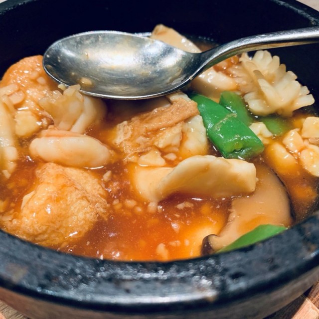 Who would have expected a Si Chuan restaurant to incorporate our local claypot rice to its menu? Speaking of claypot rice, the most irresistible flavour is none other than the Sliced Pork and Salted Fish version $18 (咸鱼五花肉煲饭). With the increase in prices of salted fish, it was a delight to find generous-sized salted fish in the pot of fluffy rice.Meanwhile there is also the Claypot Rice with Chicken, Live Frog and Enoki Mushroom$18 (松菇双滑鸡煲饭). 一道菜讲求所谓的 “色、香、味”---Perhaps due to the cool and comfortable interiors, there was not much of the sizzling sounds or smoky scents of charred rice. Fortunately, I could gleefully scrape off an abundant amount of burnt rice at the base of each claypot and swirl in more dark soya sauce provided alongside. If you are ordering other dishes, each claypot rice can feed about 2-3 mouths. The highlight of the day was the Barbequed Suckling pig $198, which was indeed a terrific dish. Prepared by Barbeque Chef Zheng Guang Liang, the pig from Hebei China is grilled excellently to produce a crisp, burmished crackling skin and ladies can forget about scraping the fats off the skin. Meanwhile the meat, which was sliced and re-served for easy consumption, was neither too dry nor too greasy—a culinary feat that deserves a round of applause for the chef. Besides the new promotional dishes, regular items such as the Double-boiled Deer Tendon Soup with Deer Antler (上等鹿茸炖鲜鹿根汤) $18/person is definitely worth ordering. Made with good quality ingredients and herbs such as cordyceps flowers that warms your body, it is a nourishing brew that is brimming with collagen. Jumping straight to desserts, What forged a deeper impression was the Deep-fried Yam coated with Soya Bean Crisps (豆莊皇沙酥) $18. The yam was soft, with a crunchy exterior that triggers your sweet receptors but not too much. And the fact that it is made with soya bean gives us a very good excuse to enjoy this indulgent snack!For full review and more photos, please visit http://dairycream.blogspot.jp/2013/09/si-chuan-dou-hua-winter-revelry-of.html…查看更多