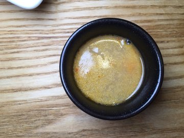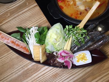 The restaurant was located at the end. There was no no queue, but all members of the dining had to be around before being shown to a table. Comparing to its menu when it just opened in Singapore, the menu had expanded a lot to Curry Flavour and Spicy Chili Flavour Collagen chicken stock , shabu shabu, sukiyaki, and shaved ice.Nikumaki ($3.50++)Nikumaki onigri is bite-sized rice ball wrapped in pork, baked with a special soy sauce.Felt it was quite savoury with the rice inside moist and flavourful.Nikumaki Cheese ($3.80++)Melted cheese on Nikumaki.The cheese flavour was quite distinct and could be slightly overwhelming. Bijin Nabe (S$25++/ person)1. Soup Base - Spicy Chili Flavour Collagen Chicken Stock2. Ingredients - Lettuce, Baby Sweet Potato Leaves, Enoki Mushrooms, Baby Corn, Black Fungus, Deep Fried Tofu, Tori Tsukune, Sunflower Sprout, Prawn, and Watermelon Radish3. Noodle - Thick Mochi-Mochi NoodleServed with Basic Sauce Set : Homemade Chili Oil, Leek Oil, Yuzu Pepper, Homemade Chili Padi Soy SauceThe soup base was served in jelly form, which will melt as the pot warm up. After it was fully melted, the staff would served the stewed chicken in bowl with the soup in a tiny tasting cup. The soup was rich and flavourful without too spicy.The staff placed the ingredients in the hotpot, with the noodle last after finishing most of the ingredients in the pot. The staff also served a seaweed based paste which was said to enhance the soup's taste.After finishing the hotpot, we were served a plate which was decorated in a cutesy way with jelly cube for dessert."Shirokuma" Shaved Ice ($7.80++)Shaved ice and condensed milk, shaped into a white bear that is cute to eat.It was cute and not too sweet. Would prefer the ice to be shaved finer and the milk to be distribute more evenly instead of just the centre.…查看更多