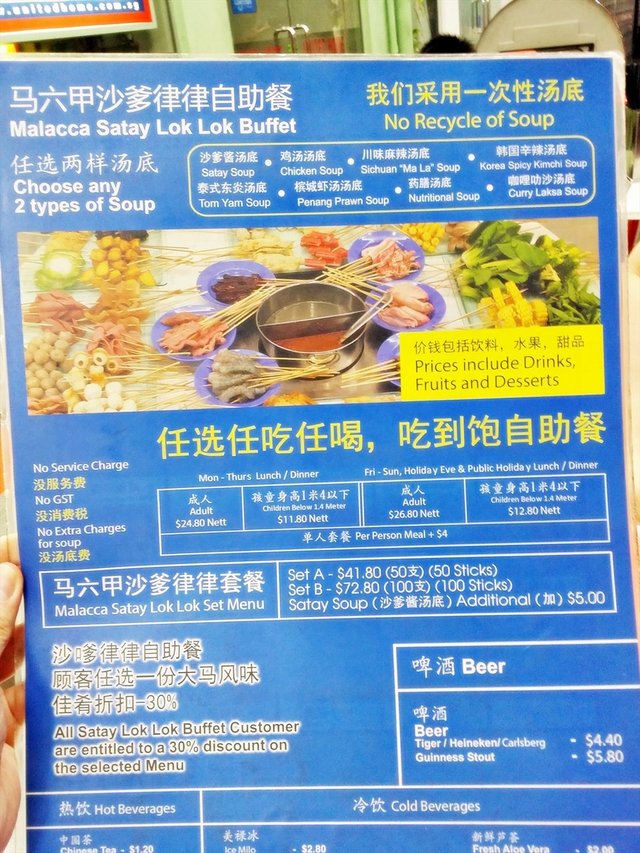 Full Malaysia Local Delights (Lok Lok Buffet) review here: http://ivanteh-runningman.blogspot.sg/2015/01/malaysia-local-delights-lok-lok-buffet.htmlLocated in the Tanjong Katong area of Singapore, Malaysia Local Delights has been around for awhile, and I visited them a few years back when they only sold their signature yellow skin Kampung Chicken Rice. These days, Malaysia Local Delights has also started offering a Lok Lok Buffet, and most diners that visit now go for this option.Ambience at Malaysia Local Delights (Lok Lok Buffet) is typical of a coffeeshop, brightly lit with plastic tables and chairs. Fortunately, it's rather clean, and the pleasant outdoor seating lends to the overall ambience. Indoors is slightly more stuffy though, and the smell of bubbling hot pots lingers in the air.Service at Malaysia Local Delights (Lok Lok Buffet) is very good. The 3 freezers of food are kept constantly restocked, and if you order from the ala-carte menu, food is also prepared and served quickly. The lady boss is helpful and friendly, making conversation with diners and coming around to check on how your meal is going.Food at Malaysia Local Delights (Lok Lok Buffet) is passable, somewhat average. While I love the freshness of the vegetables and seafood, their meat is frozen, not fresh, and this results in poorer taste and texture. Their fried items are pretty good though, especially their chicken wings! Prices here are nett, at SGD $26.80 per person for free flow of food, including drinks.Choose any 2 of the 8 types of Soup Base for cooking the Lok Lok / Food Skewers. For Soup Base, we selected the Chicken Soup & Tom Yum Soup, and chose to get the Satay Sauce on the side. The lady boss tells us that all spice levels are toned down, to suit those who don't like spicy food. For those who like their spicy food really hot, the lady boss says that customers can request to increase the spicy level of the soup base after ordering. Their signature here is their Satay Sauce, which is thick and savoury with a slight sweetness, with a whole lot of crushed peanuts within.There are over 50 different items offered for the Lok Lok Buffet here. Each individual food skewer has a rather small portion, so it's possible to sample first, then go back for those you like, without getting too full.The selection of meat (beef, pork, chicken) use frozen meat, which lacks in taste and has a tougher texture. Go for the various sausages instead if you want meat. The vegetables and seafood, especially the prawns, are fresh, and very good. The ready to eat fried food is also pretty good, I like the chicken wings and the nonya rolls.…查看更多